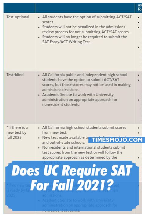While the answer to "Do UC colleges require SAT?" may seem straightforward, there is a hidden secret that many students and parents may not be aware of. Even though the UC system has adopted a test-optional policy, some individual UC colleges and programs may still require or strongly recommend SAT scores. It's important to research and understand the specific requirements of each UC college or program you are applying to.